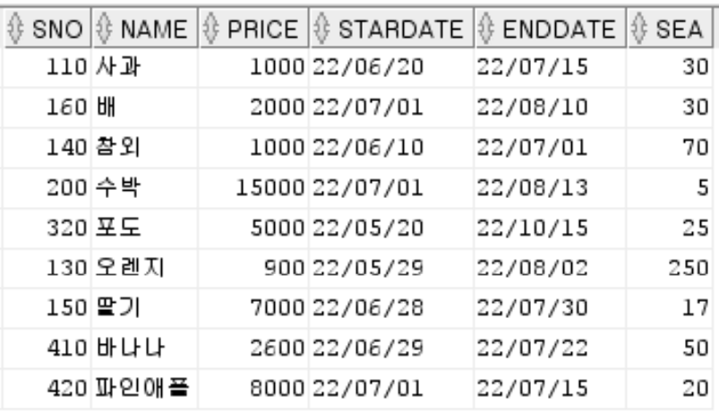 * 과일 가게 테이블의 생성 과정은 아래 포스팅 내용과 같습니다 *